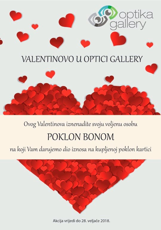 Ovog Valentinova iznenadite svoju voljenu osobu poklon bonom optike Gallery, na koji Vam darujemo dio iznosa.